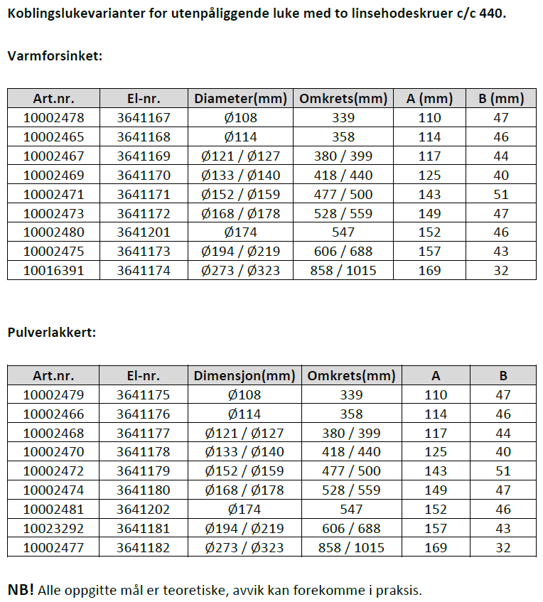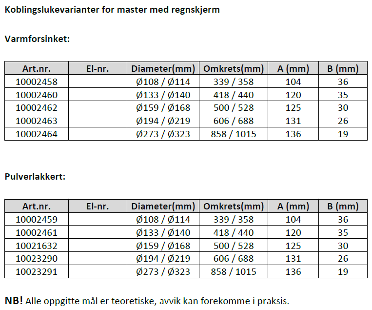 Dersom du ikke har artikkel- eller el-nummeret, kan du måle diameteren på masten i området ved lukeåpningen. Alternativt kan du måle omkretsen på røret.